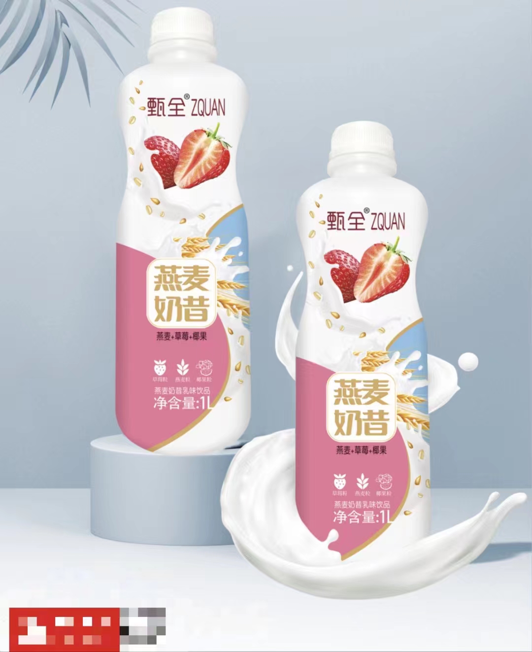 甄全燕麥奶昔1L(燕麥+草莓+椰果)